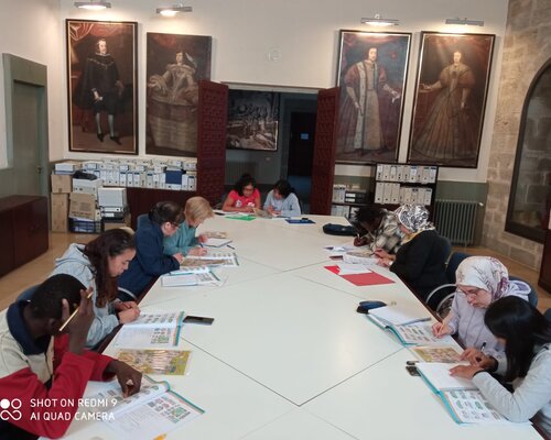 Alumnes de Comerç i vendes del Programa de Formació i Inserció (PFI) - Pla de Transició al Treball (PTT) de Lloret de Mar fan pràctiques amb alumnes del nivell Elemental 1 de l’Oficina de Català.