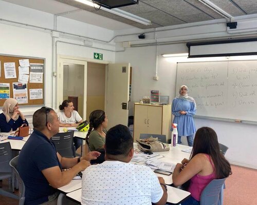 Aquesta setmana, a la classe del curs de llengua catalana de nivell bàsic 1 que s’impartix a Amposta, va tindre lloc la visita d'una exalumna, Ikhlasse Ouijan.