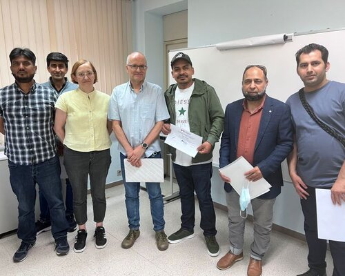 Avui s'ha fet l'acte de lliurament dels certificats als alumnes de l'escola de taxi Hassaan del Poble-sec que han seguit el curs BB
