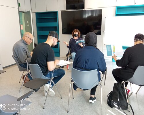 Gràcies a la col·laboració d'una voluntària per la llengua, un grup de vuit alumnes i exalumnes dels cursos de català de Berga i Berguedà poden continuar practicant la llengua oral en aquestes tertúlies que es duen a terme setmanalment.