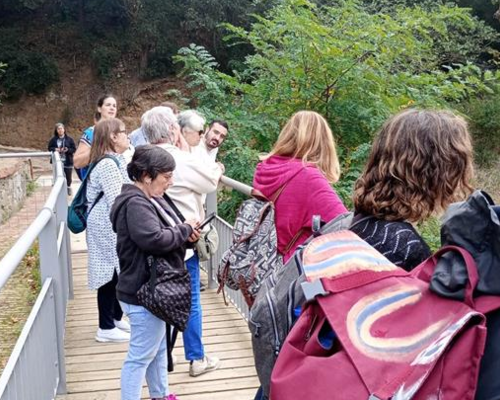 Alumnes i parelles lingüístiques de l'OC Roses caminen i parlen entre vinyes i olivars amb Cabirols Roses