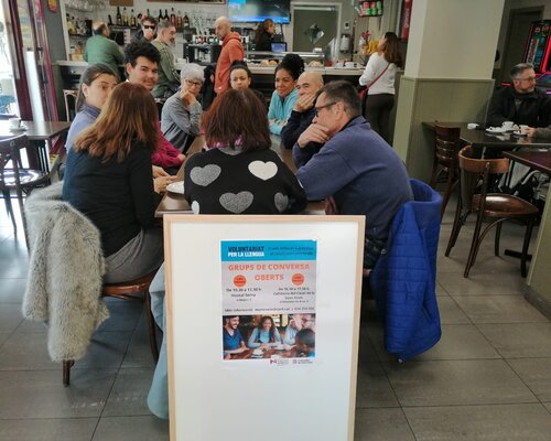 Primer dia d'un nou grup de conversa obert a la cafeteria de l'Hostal Serra de Montmeló