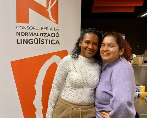 Kleria Duperval i Brisseth Rodas, parella virtual del Voluntariat per la llengua, al Taller de cuina a quatre mans