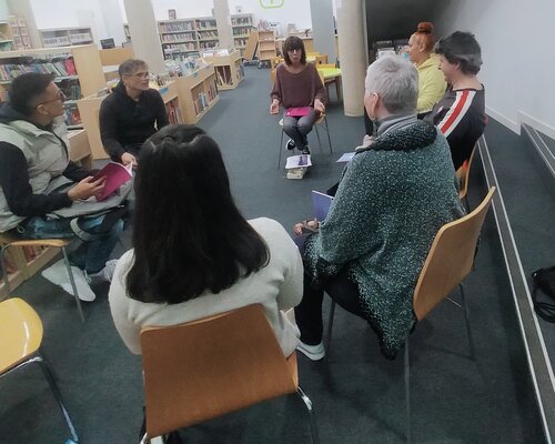 Els alumnes del cursos Bàsic 1 fan una activitat a la Biblioteca Josep Mateu i Miró de Castellbisbal