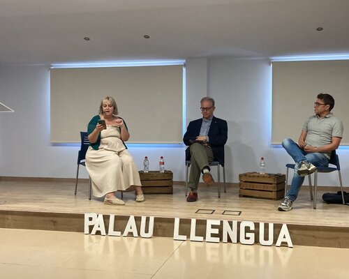La presentació va comptar amb les intervencions de la regidora d’Educació i de Xavier Gual.