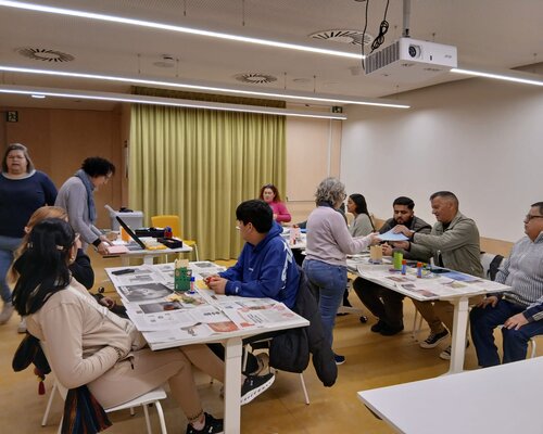 Els alumnes dels cursos de català participen en un taller nadalenc a la Biblioteca l'Alzina