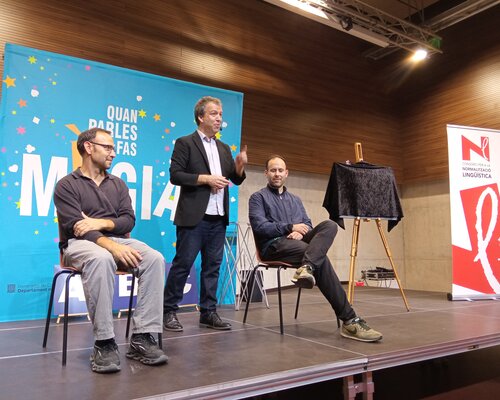 El mag Juanola va omplir de màgia el local del Foment Vilanoví, entitat adherida al VxL on es va fer la celebració