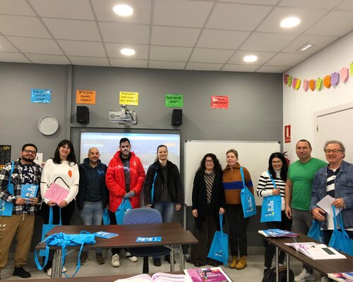 Alguns dels voluntaris van anar a l’aula del nivell bàsic 3 a conèixer els seus aprenents