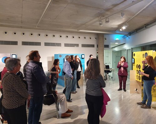 Un grup de voluntaris i aprenents van visitar ahir l'exposició “Parlar és a les teves mans”.