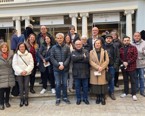 Alumnes i participants del Voluntariat per la llengua gaudeixen de l'obra convidats pel teatre Els Carlins