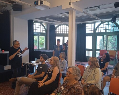 Dimecres 5 d'octubre aprenents i voluntaris del programa Voluntariat per la llengua del CNL de Barcelona van fer un taller de doblatge en català a la Casa Orlandai de Sarrià.