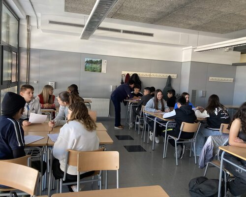 Voluntaris per la llengua de Corbera de Llobregat expliquen el VxL als alumnes dels cursos Elemental 1