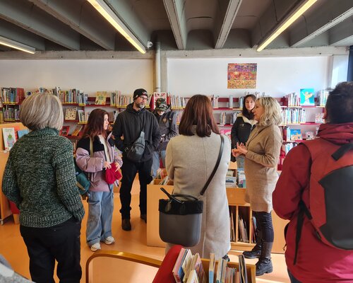 Visita a la Biblioteca Municipal Glòria Tudela dels alumnes de català de Vilanova de Bellpuig