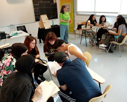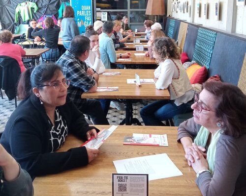 Els alumnes de nivell bàsic practiquen català fora de l'aula