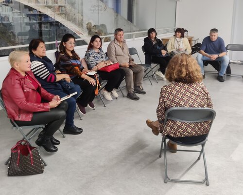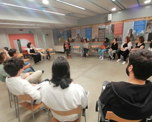 Anna Maluquer condueix una sessió del Poema de la rosa als llavis a la Biblioteca Vila de Gràcia