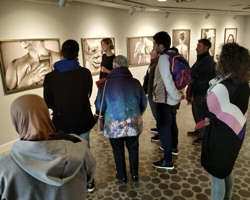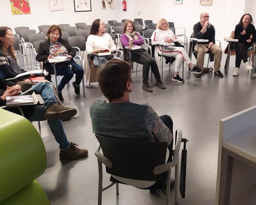 Amb la voluntat d'obrir un àmbit nou per fomentar l'aprenentatge de la llengua catalana entre l'alumnat dels nostres cursos, hem fet una visita guiada a l'exposició "Cicatrius de l'ànima", a càrrec d'Emma Alcalá, fotògrafa, autora de la mostra i alumna dels cursos de català.