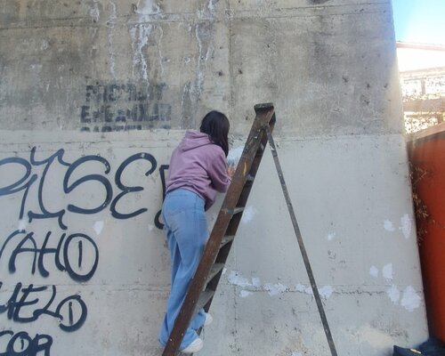 Ja s'ha començat a pintar el Mural de les llengües d'Olot
