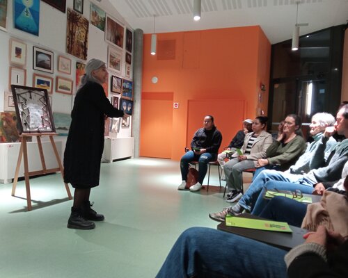 Dilluns 21 de novembre al vespre un grup de Bàsic 1 de Nou Barris va fer una visita a l'Arxiu Històric de Roquetes-Nou Barris