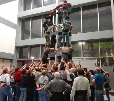 Els alumnes d'un grup de nivell Elemental 1 que fan classes al districte de les Corts, van assistir a un nou taller dels Castellers de Sants