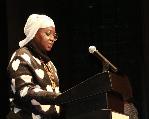 Tot i la pluja, l'escenari del Teatre Mundial es va emplenar de públic que hi va assistir per escoltar la lectura de poemes organitzada per celebrar el Dia Mundial de la Poesia.