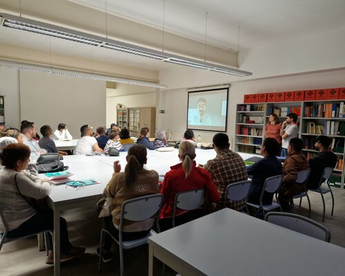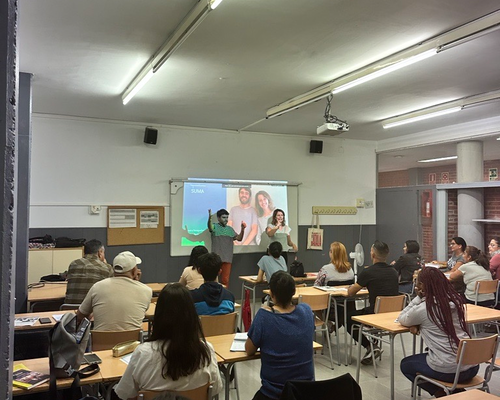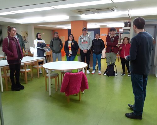 Alumnat i participants del Voluntariat per la Llengua assisteixen al taller