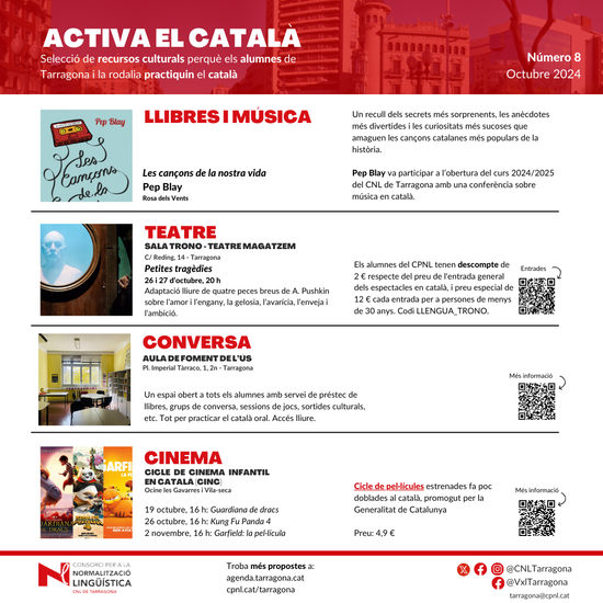 Activa el català és una selecció de propostes culturals perquè els alumnes de Tarragona i la rodalia practiquin el català.