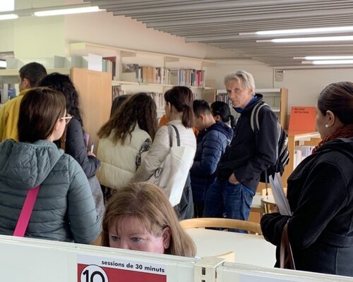 El 22 de febrer passat, un grup del curs Bàsic 2 de Vilafranca del Penedès, amb 15 alumnes, va sortir de l'aula de català per conèixer la Biblioteca Torras i Bages. La visita va anar a càrrec d'una tècnica de la biblioteca, que va guiar el grup fent un recorregut per les instal·lacions de l'edifici. Els alumnes van seguir correctament la informació que se'ls donava sobre el funcionament global de l'equipament, el fons bibliogràfic, l'espai dedicat a l'aprenentatge de català, el servei de préstec dels llibres, l'accés a Internet...