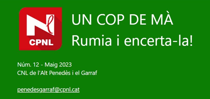 Ara fa un any, el CNL de l'Alt Penedès i el Garraf va publicar el primer número del qüestionari Un cop de mà. Rumia i encerta-la! coincidint amb la data en què es commemora el Dia Internacional del Joc, el 28 de maig.