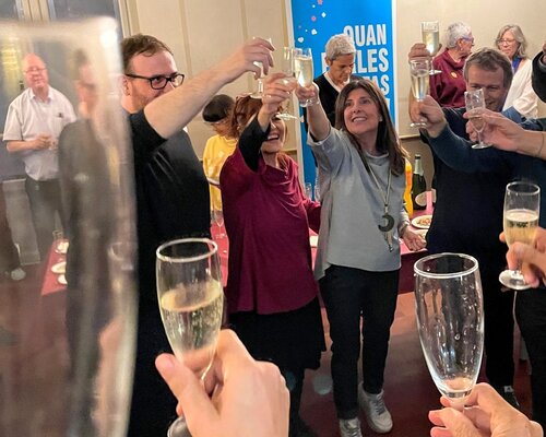 Per acabar, tothom va brindar amb una copa de cava pel Voluntariat per la llengua, pels vint anys passats i pel futur del programa.