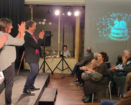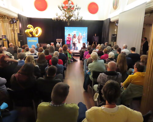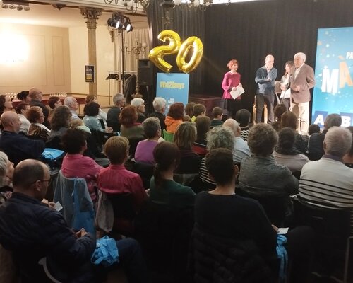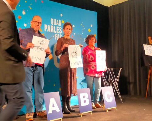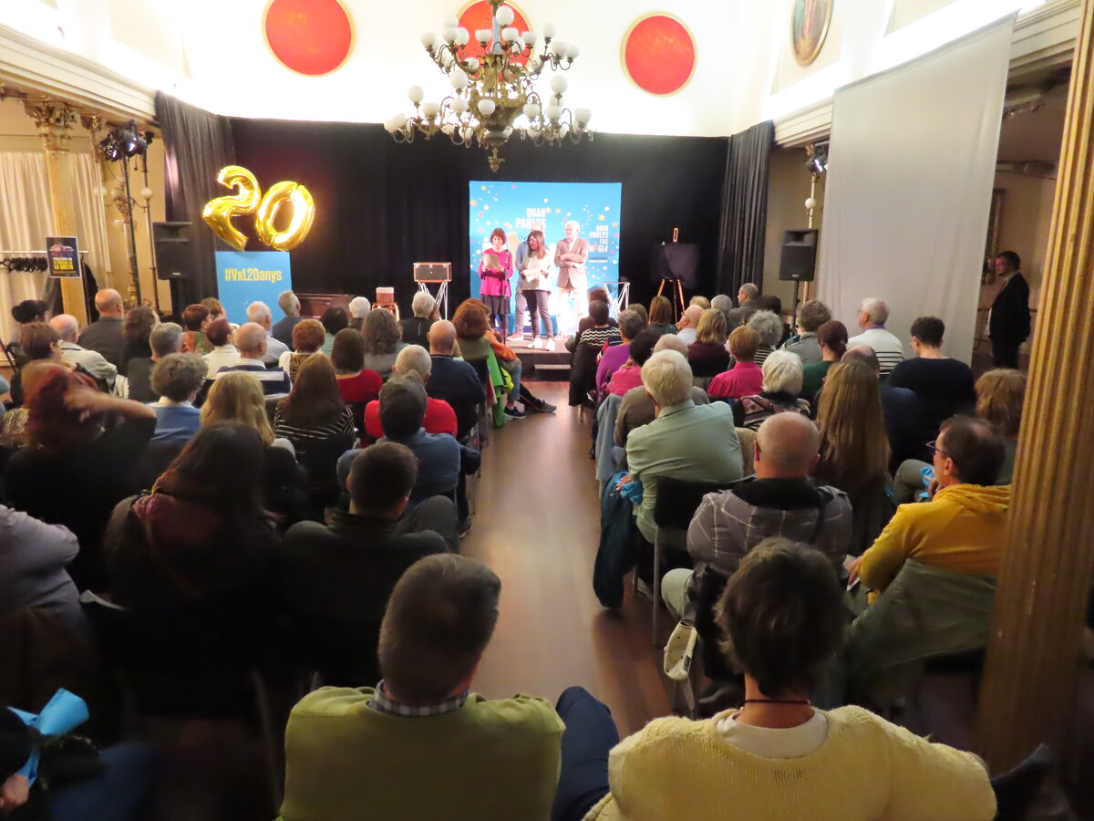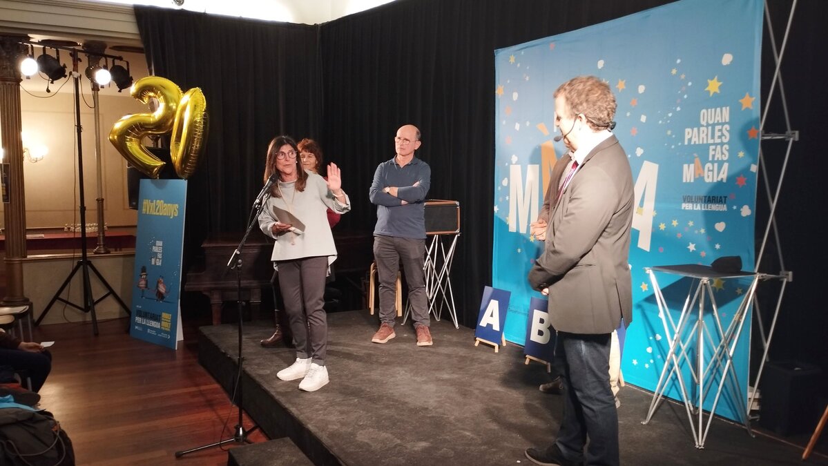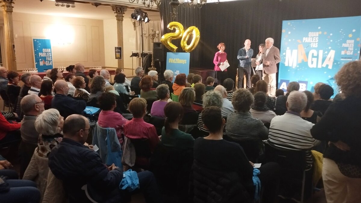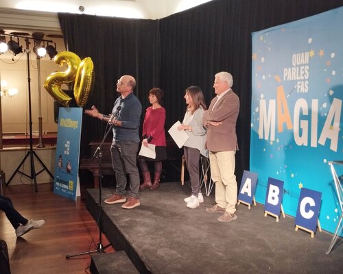 Un centenar de persones van omplir la sala d'actes del Foment Vilanoví, de Vilanova i la Geltrú, per celebrar els 20 anys del programa Voluntariat per la llengua (VxL). La celebració va comptar amb la màgia del mag Eduard Juanola i dels assistents, entre els quals hi havia voluntaris, aprenents, representants d'establiments col·laboradors i entitats adherides al VxL i personal del CNL.