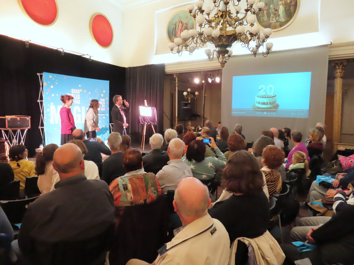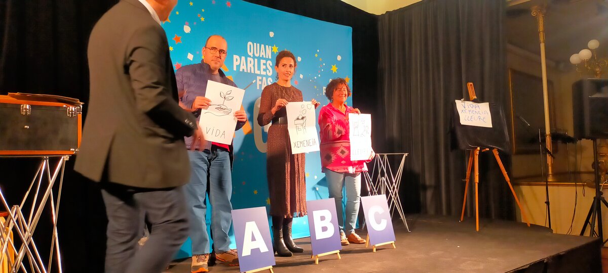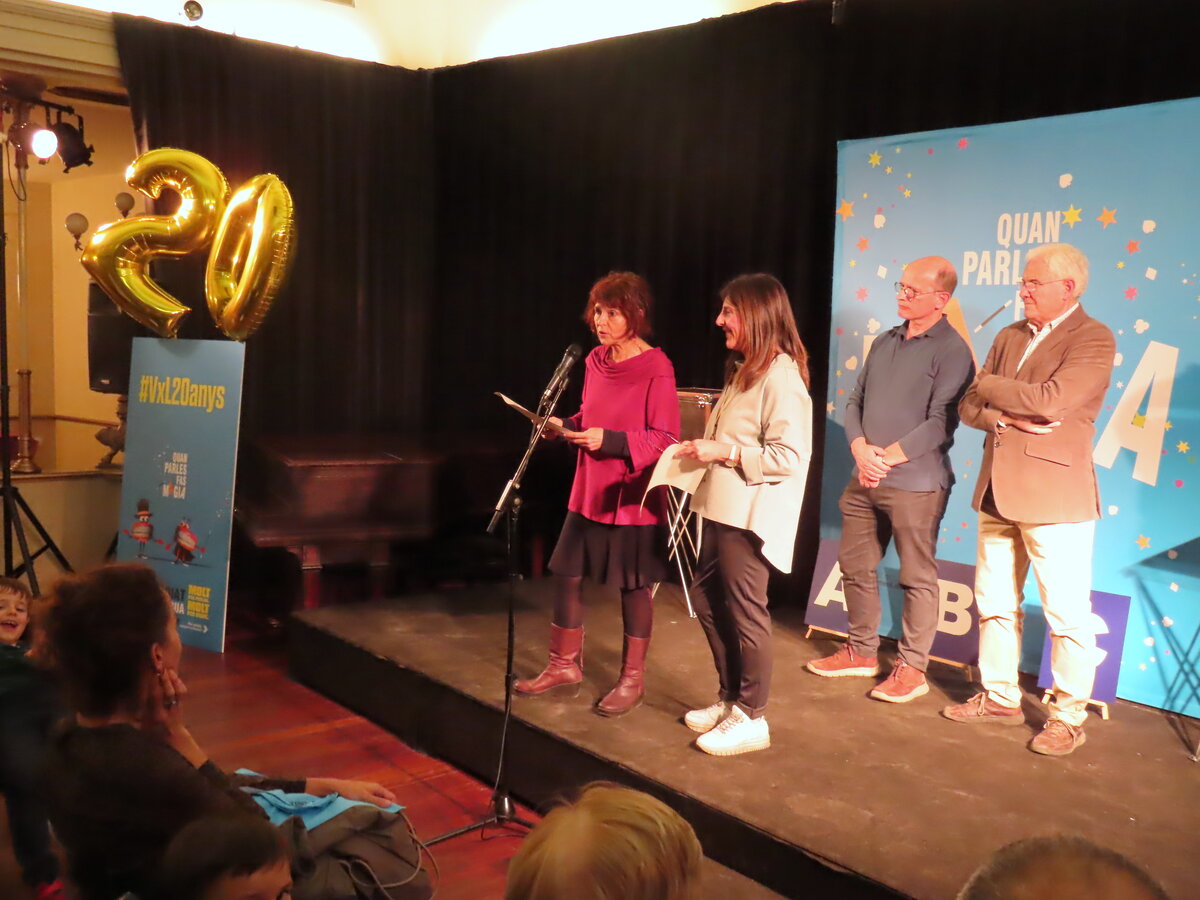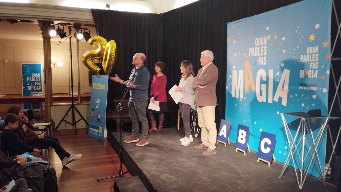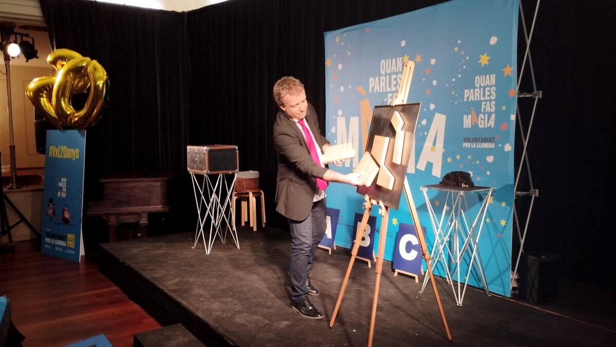 Abans de l'actuació del mag, el president del Foment Vilanoví, Enric Ferrer, va donar la benvinguda als assistents i el director del CNL de l'Alt Penedès i el Garraf, Biel Senabre, també s'hi va dirigir per dir que l'acte era un reconeixement a totes les persones que han col·laborat en el VxL durant dues dècades i va agrair a tothom la dedicació que hi ha tingut. A continuació, les dues dinamitzadores del programa, Queti Vinyals (Garraf) i Gemma Garcia (Alt Penedès), van glossar les virtuts i les emocions del VxL i van destacar i agrair la imprescindible i entusiasta implicació de voluntaris, aprenents, establiments col·laboradors i entitats adherides (en podeu llegir la intervenció clicant aquí).