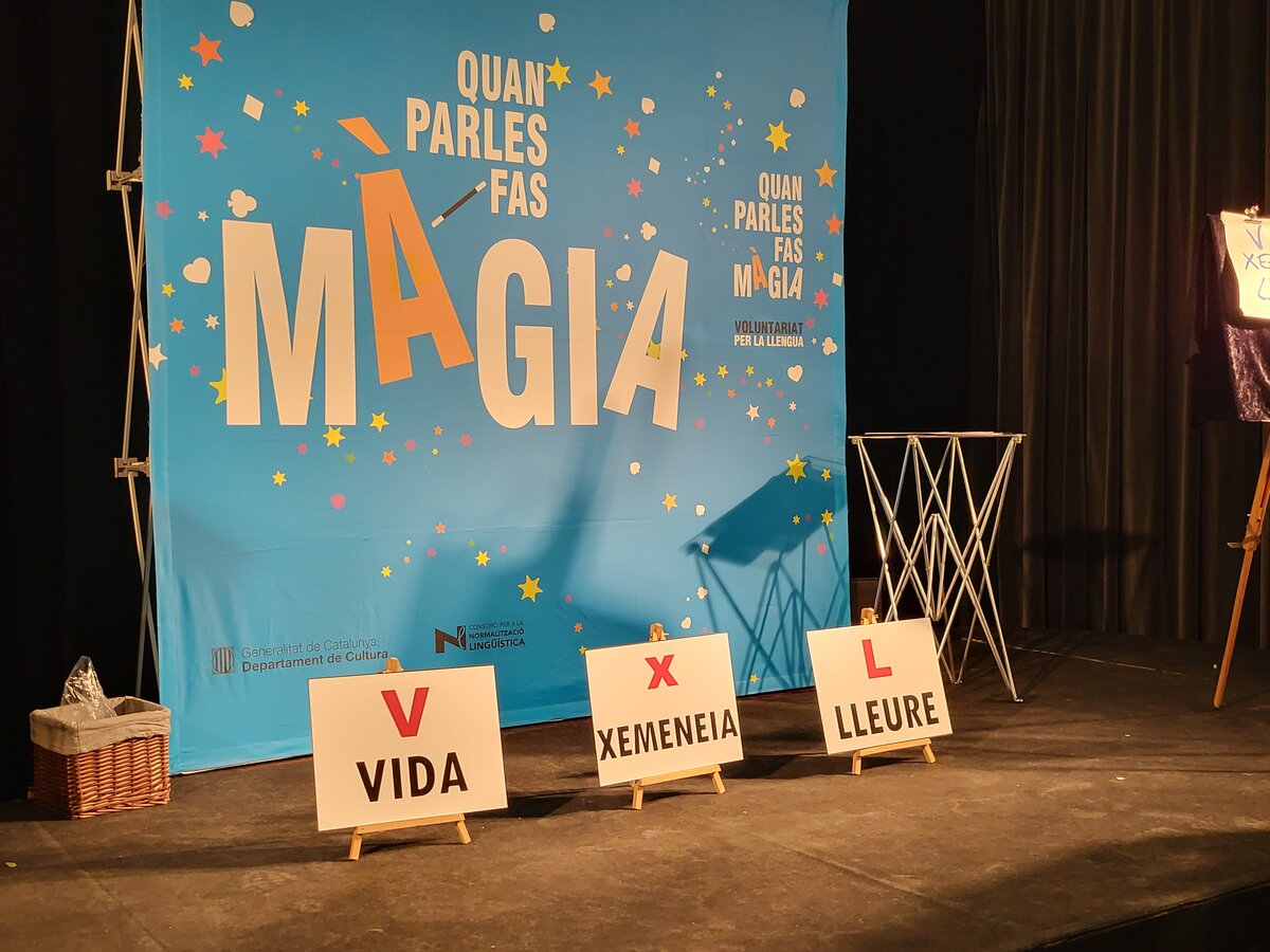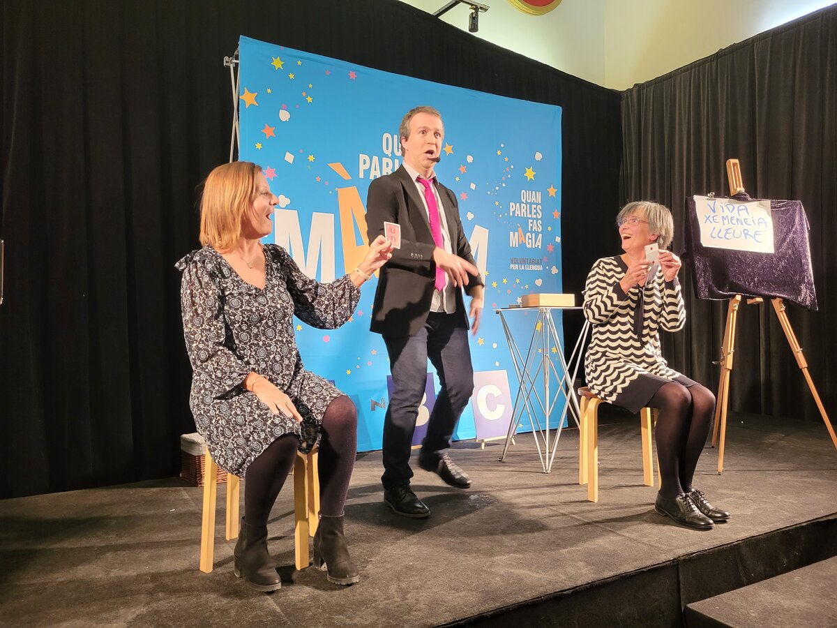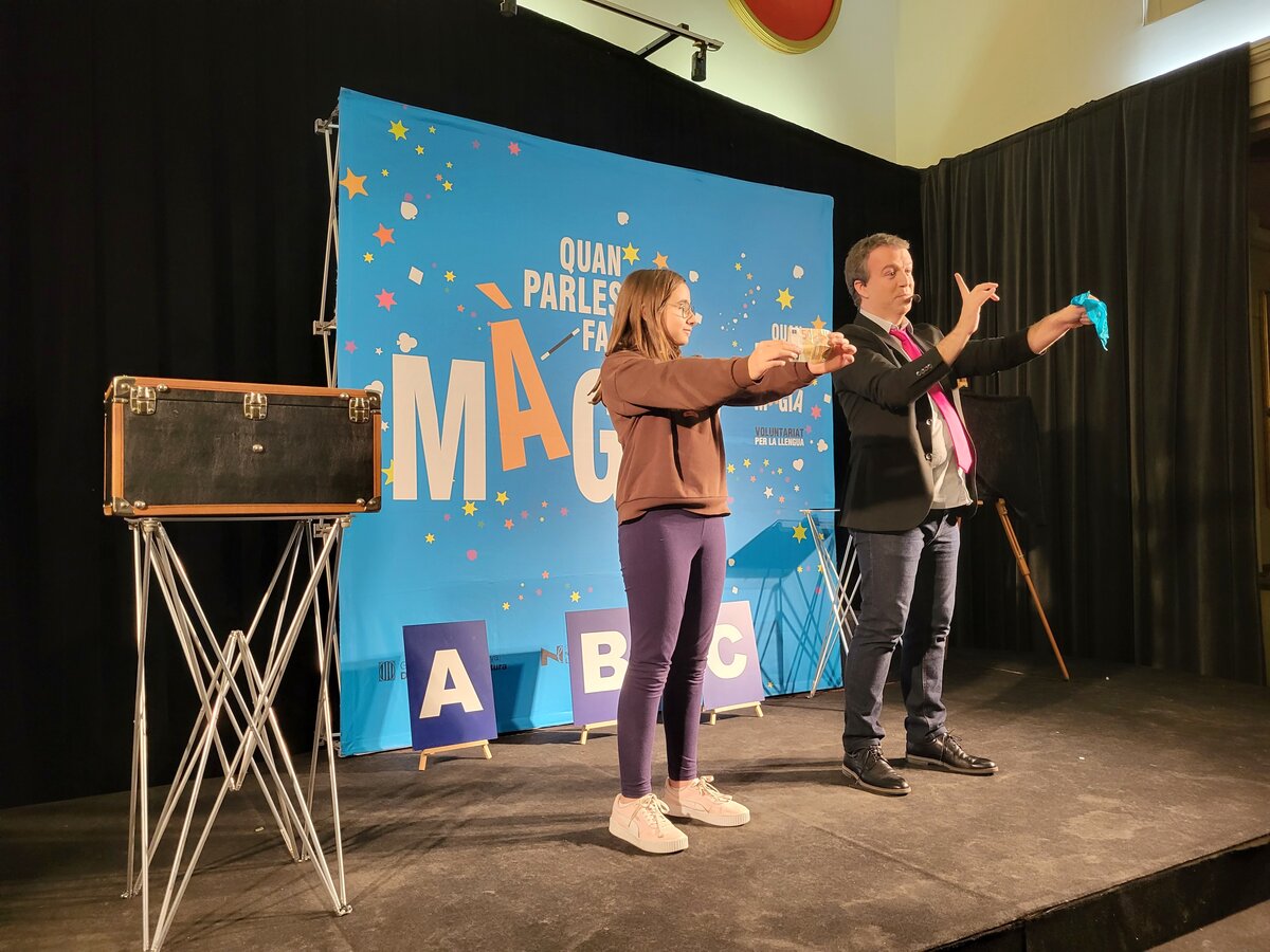Tot seguit, "el mag del Voluntariat per la llengua", Eduard Juanola, va desplegar a l'escenari tota mena de trucs i habilitats que van deixar bocabadats els assistents, que van seguir amb atenció els diferents números de l'espectacle, i alguns hi van prendre part i tot.