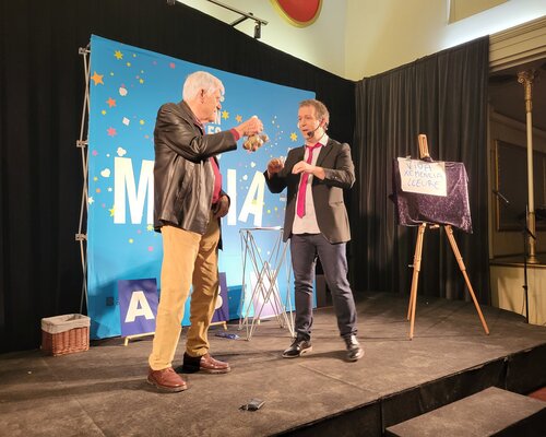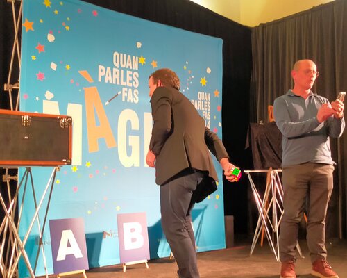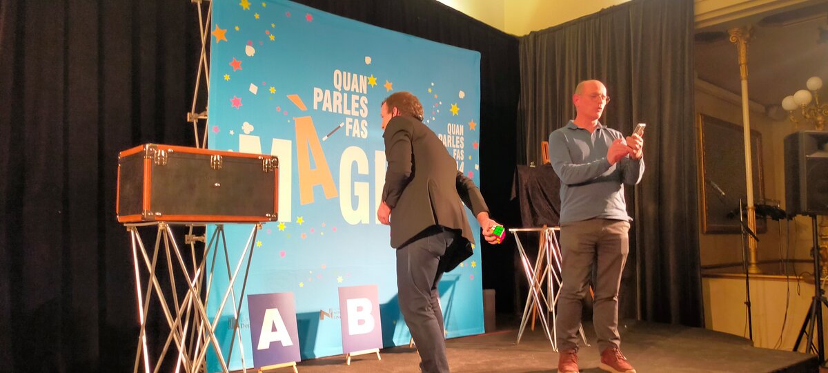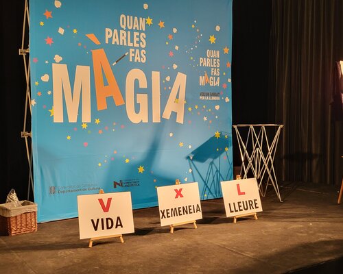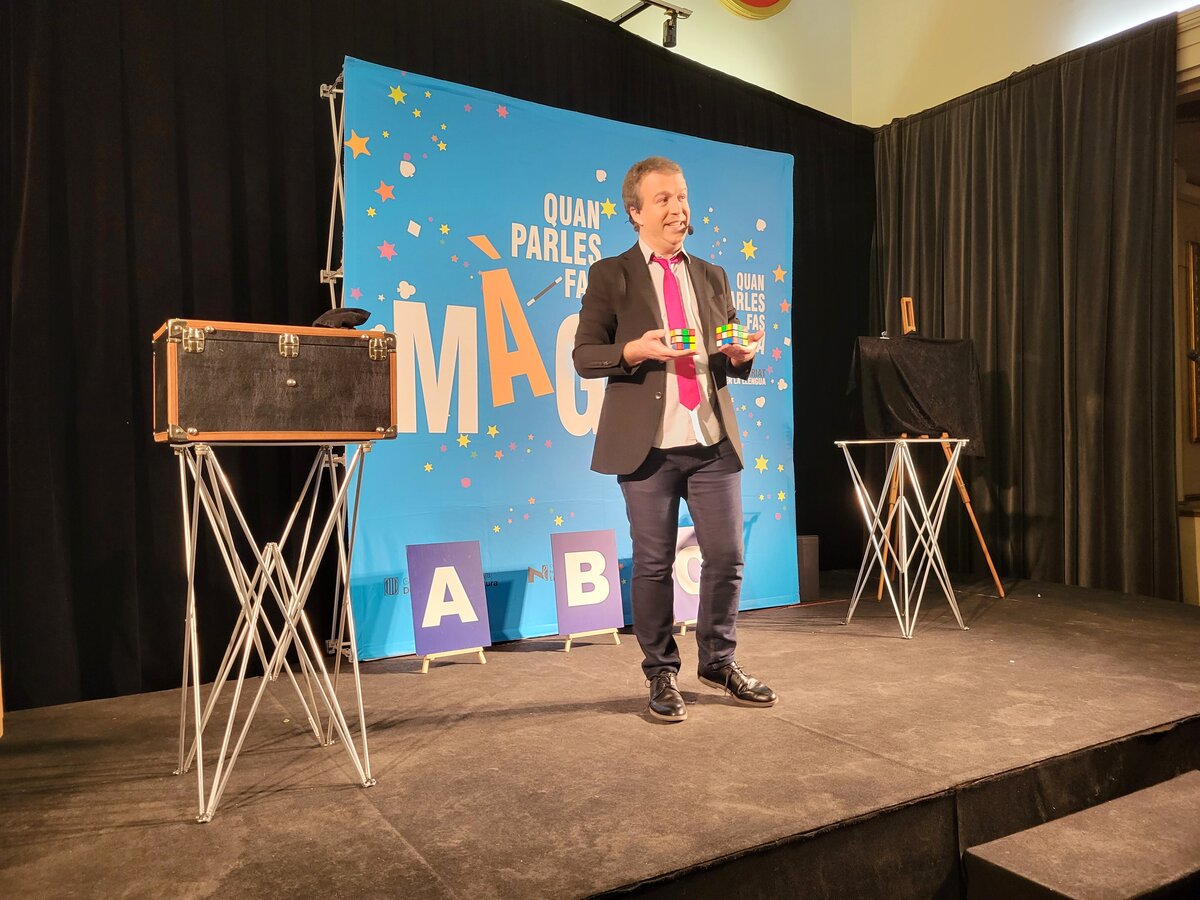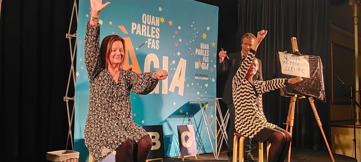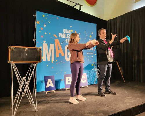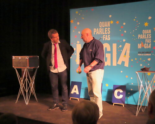Tot seguit, "el mag del Voluntariat per la llengua", Eduard Juanola, va desplegar a l'escenari tota mena de trucs i habilitats que van deixar bocabadats els assistents, que van seguir amb atenció els diferents números de l'espectacle, i alguns hi van prendre part i tot.