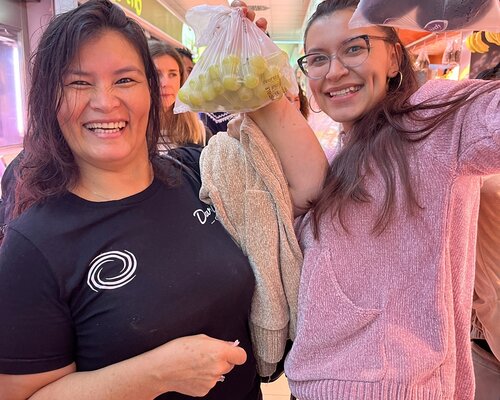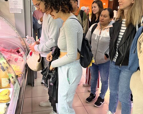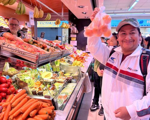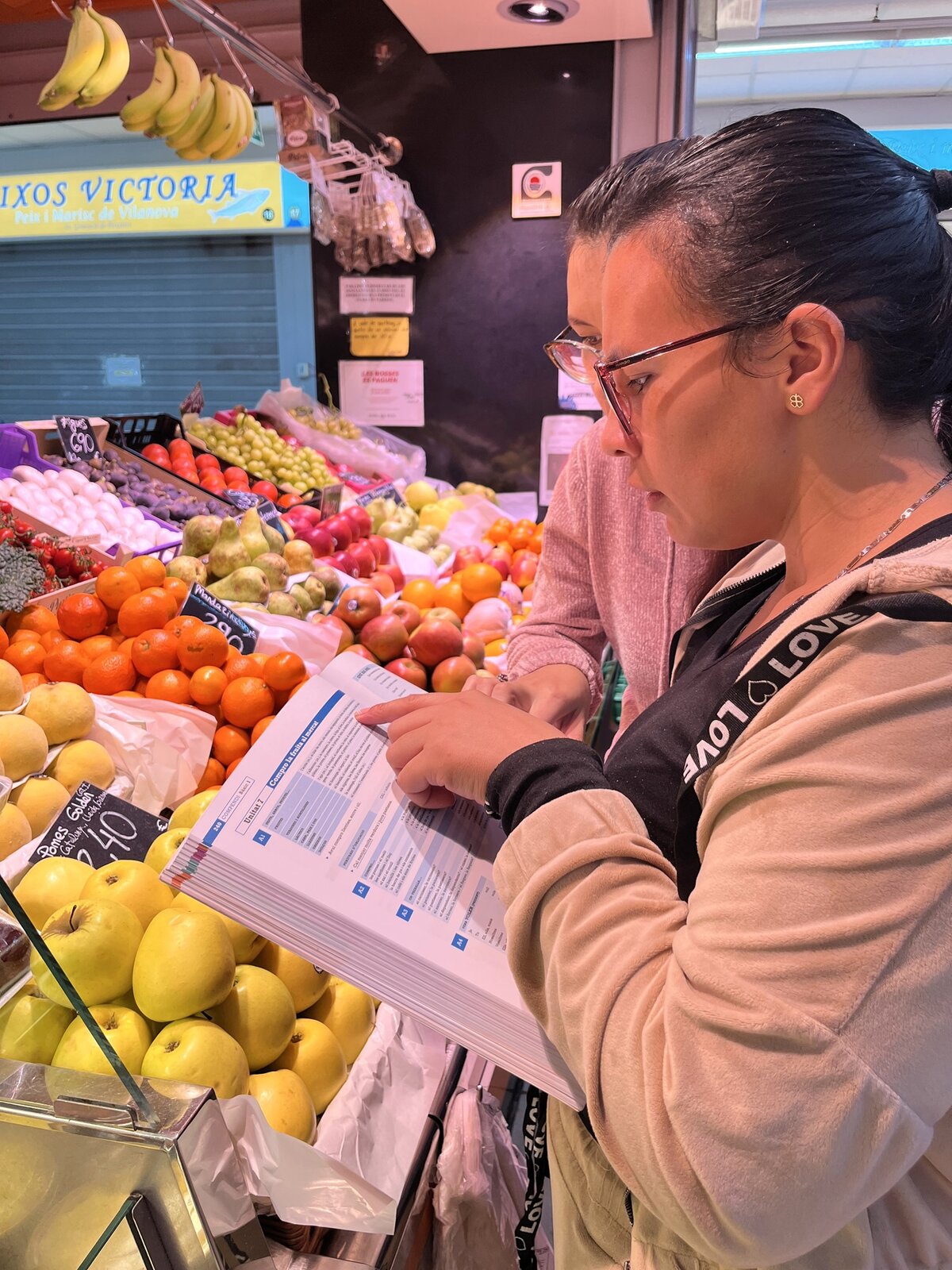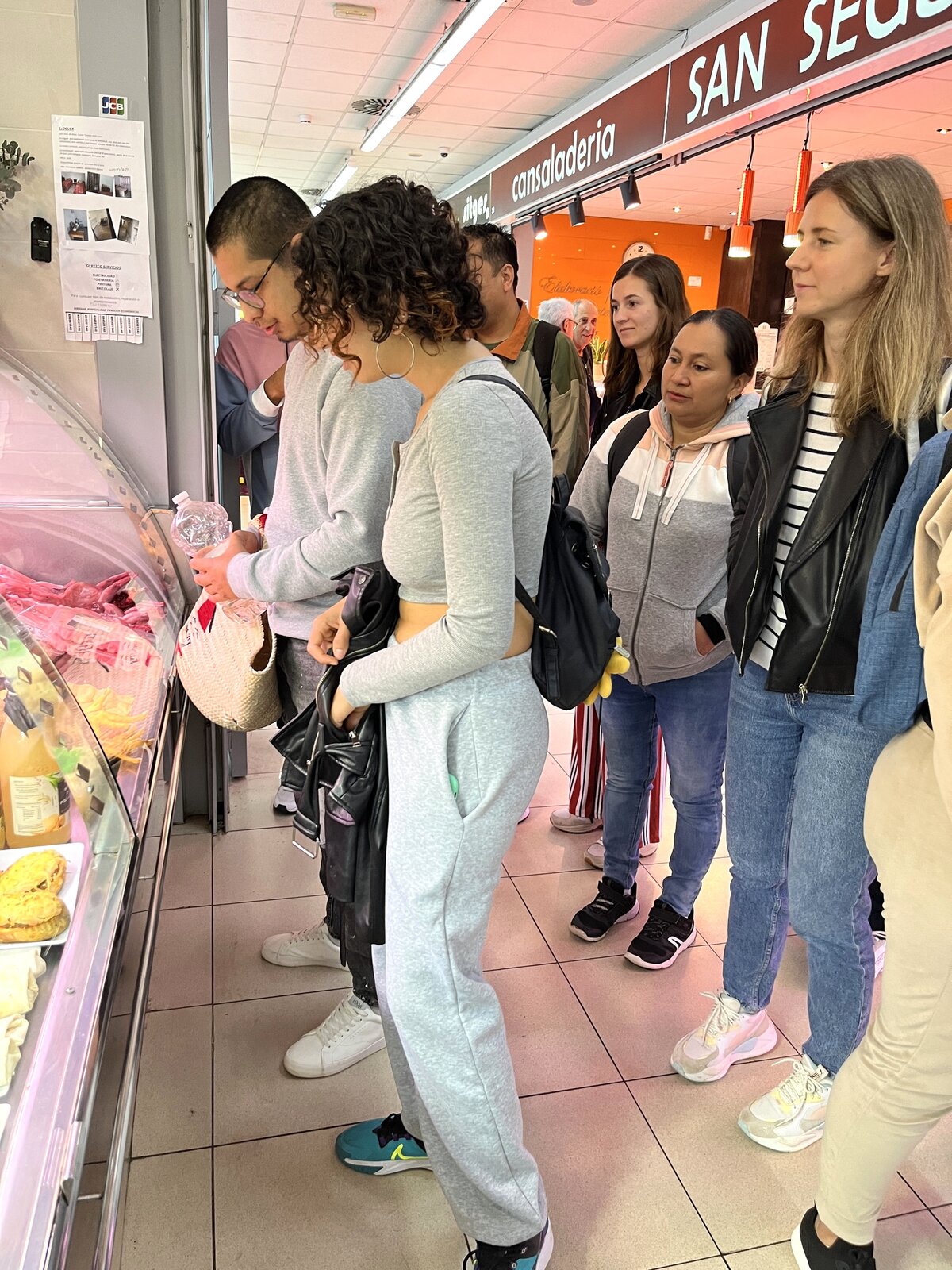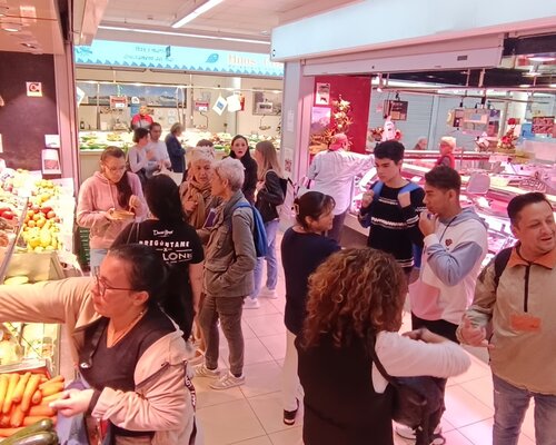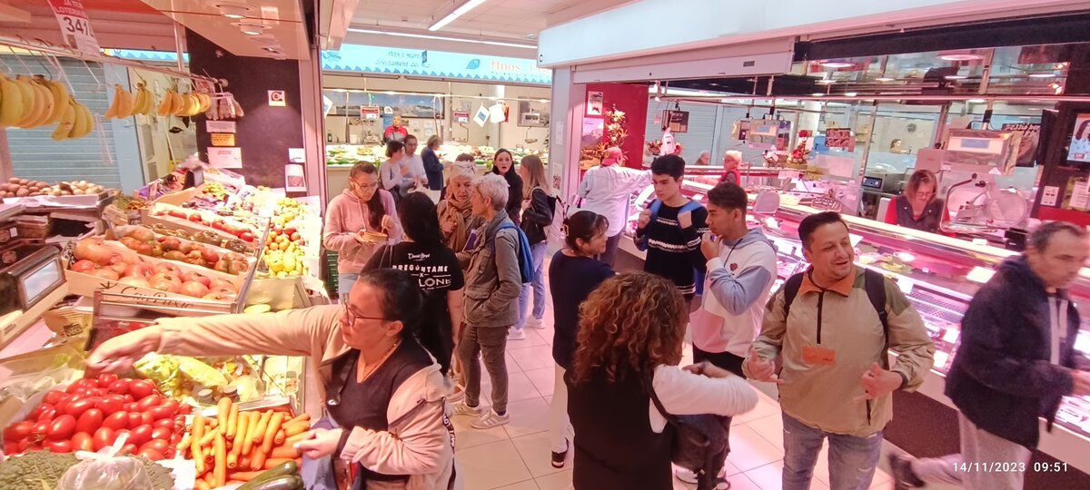 El dia 14 de novembre, un grup d'alumnes del Bàsic 1 de Sitges, acompanyats per la professora, van anar al mercat municipal. Hi van anar amb moltes ganes de practicar el català fora de l'aula. S'ho van passar molt bé. Van visitar diferents parades on van comprar fruita, pernil, embotit, peix... Abans, a classe, havien treballat el lèxic dels aliments i les diferents estructures adients per comunicar-se a les botigues.
