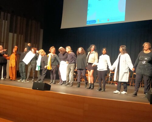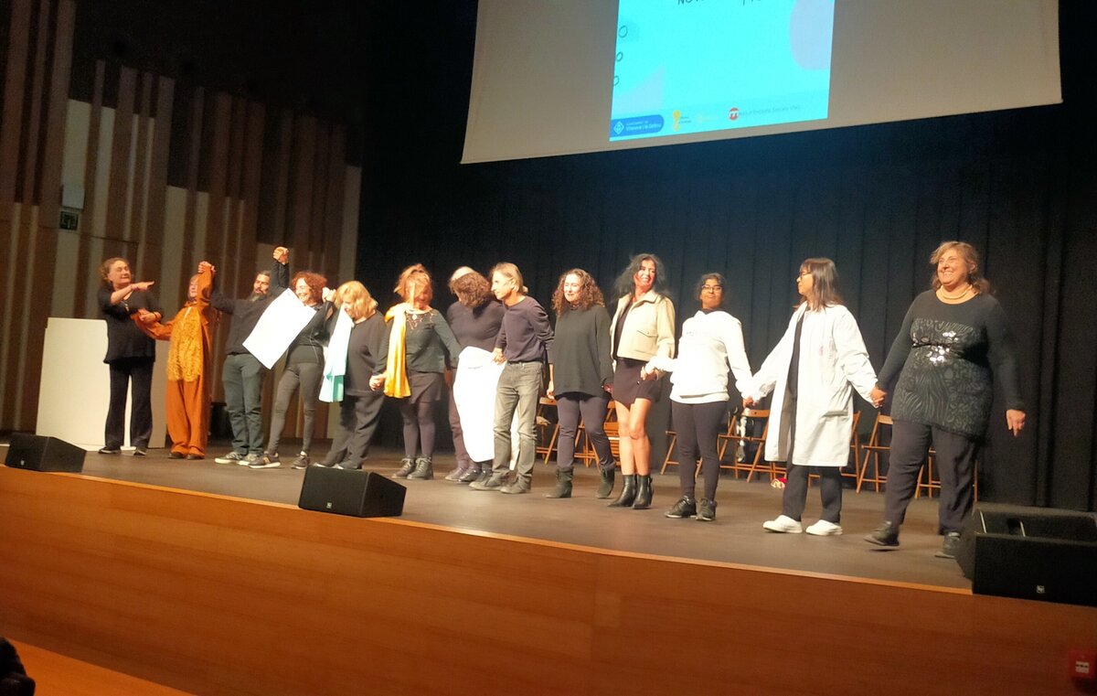 Voluntaris i aprenents posen en escena l'obra Història del Voluntariat per la llengua