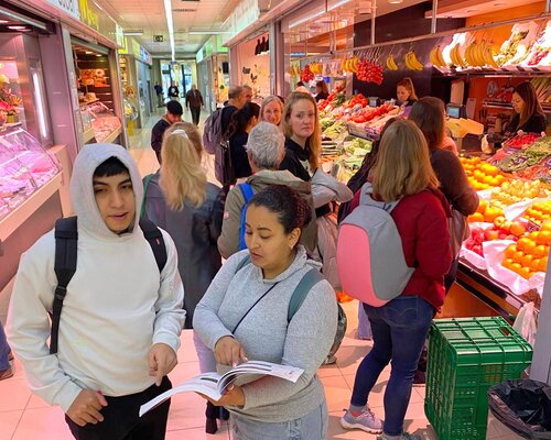 Hi van anar amb moltes ganes de practicar el català fora de l'aula. S'ho van passar molt bé. Van visitar diferents parades on van comprar fruita, pernil, embotit, peix... Abans, a classe, havien treballat el lèxic dels aliments i les diferents estructures adients per comunicar-se a les botigues.