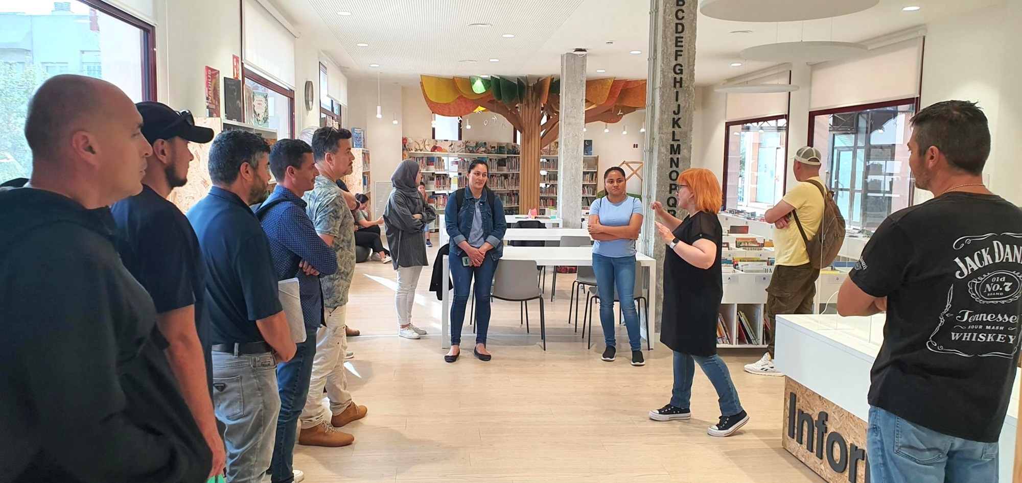 Durant la visita, la bibliotecària els va ensenyar els diferents espais i els va explicar on trobar llibres de lectura fàcil. Els va comentar tots els materials i serveis que ofereix la biblioteca i com fer-se el carnet. També els van animar a anar a la biblioteca i practicar el català.