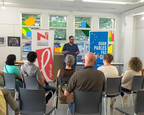 El dimecres 18 d'octubre el Centre Cívic de Sant Joan va acollir la presentació de les noves parelles lingüístiques que a partir d'aquest mes començaran les deu trobades d'una hora a la setmana per conversar en català. El dinamitzador del VxL al Garraf, Marc Mata, va donar la benvinguda a la vintena de persones entre voluntaris i aprenents que hi van assistir. Un cop fetes les presentacions de les parelles, el dinamitzador els va explicar el funcionament a partir de les orientacions generals del programa, els va lliurar els materials de suport i els va convidar a participar en les activitats complementàries que s'organitzen a Vilanova amb la col·laboració d'algunes de les entitats i organitzacions adherides al VxL.