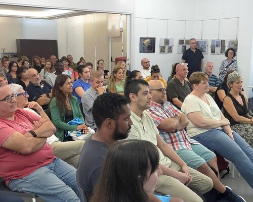 Una vuitantena de persones gaudeixen del recital Les llengües d'Enric Larreula que ofereixen els Llenguaferits