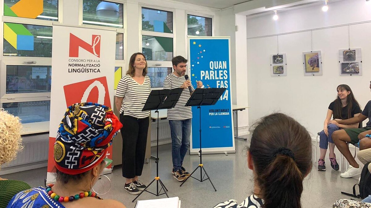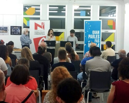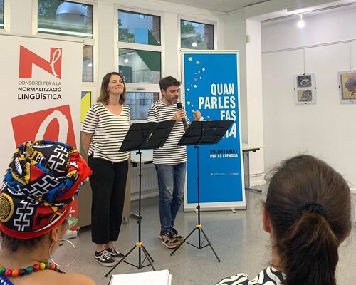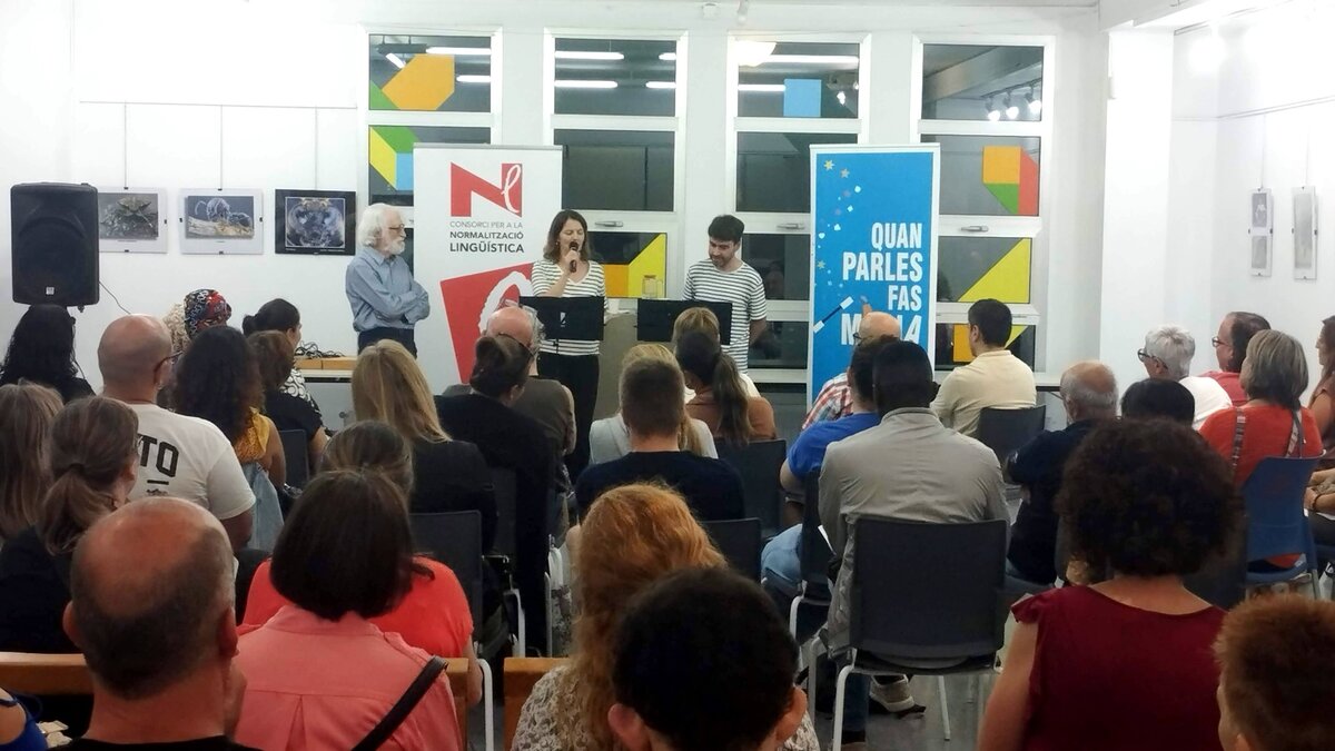 Un cop finalitzada la presentació de les parelles lingüístiques, la responsable del Servei de Català de Vilanova i la Geltrú, Isabel Julià, va donar la benvinguda als alumnes dels cursos que s'hi van afegir i va agrair la col·laboració a la direcció del Centre Cívic per l'acollida de l'acte. Tot seguit va començar el recital Les llengües d'Enric Larreula, a càrrec de Jessica Neuquelman i David Vila i Ros, els Llenguaferits.