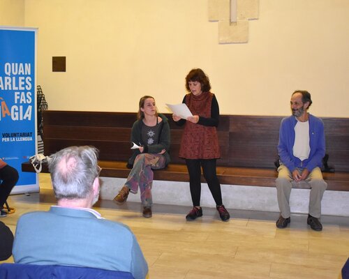 L'acte es va dividir en dues parts. A la primera es va presentar la 33a edició del Voluntariat per la llengua que organitza el Servei de Català de Vilafranca i l'Alt Penedès. La dinamitzadora del programa del VxL a l'Alt Penedès, Gemma Garcia, en va donar les orientacions i va explicar el funcionament de les trobades. Seguidament, i amb la col·laboració de dos voluntaris, es va informar de tallers i altres activitats que es portaran a terme durant aquest primer trimestre del curs.