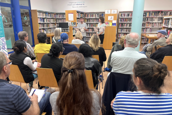 El dia 5 de maig, un grup d'alumnes dels cursos de català de Sitges, acompanyats per la professora, van assistir a l'activitat "Entre nosaltres" a la Biblioteca Josep Roig i Raventós. "Entre nosaltres" és un espectacle de narració oral a dues veus, conduït pels Llenguaferits, David Vila i Ros i Jessica Neuquelman.