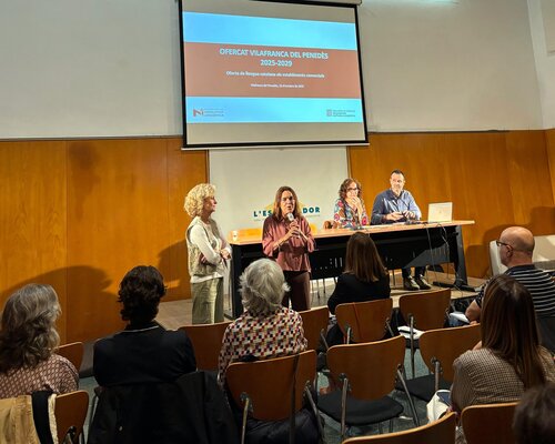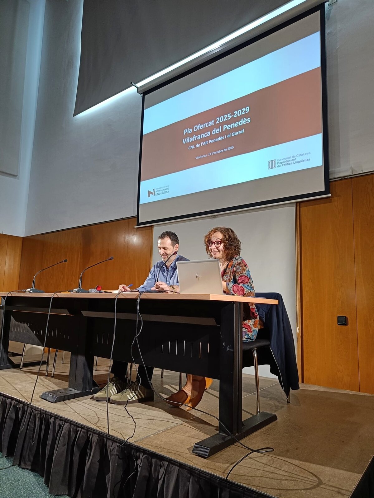 El cap del Servei de Foment de l'Ús del Consorci per a la Normalització Lingüística (CPNL), Carles de Rosselló, i la coordinadora de Dinamització del Centre de Normalització Lingüística (CNL) de l'Alt Penedès i el Garraf, Teresa Tort, han presentat el Pla Ofercat per promoure l'ús del català al comerç de Vilafranca del Penedès, que impulsen conjuntament el Departament de Política Lingüística (DPL), el CPNL i l'Ajuntament vilafranquí. L'acte de presentació ha tingut lloc el 13 d'octubre de 2025, a la sala d'actes de l'Escorxador, i hi han assistit una trentena de persones, entre les quals regidors de l'Ajuntament de Vilafranca i tècnics dels serveis de Turisme, de Consum, de Comerç i de Salut i, a més, representants de l'associació de comerciants Vilafranca Activa, membres del Consell Municipal per al Foment de la Llengua Catalana i d'altres entitats municipals.