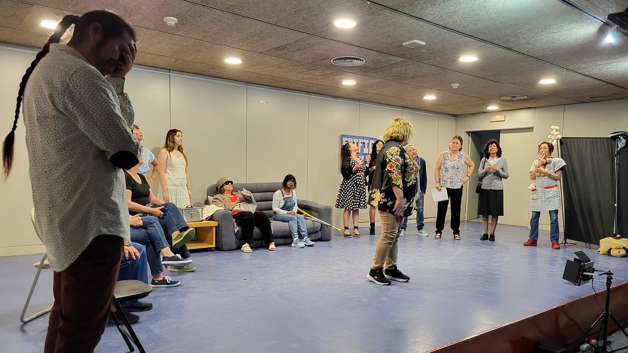 Grup CNL Teatre. Representació de "La cimera", a l'Auditori del Vinseum -esquerra-, i "Edifici VxL", al Centre Cívic La Collada-Sis Camins -dreta-. |