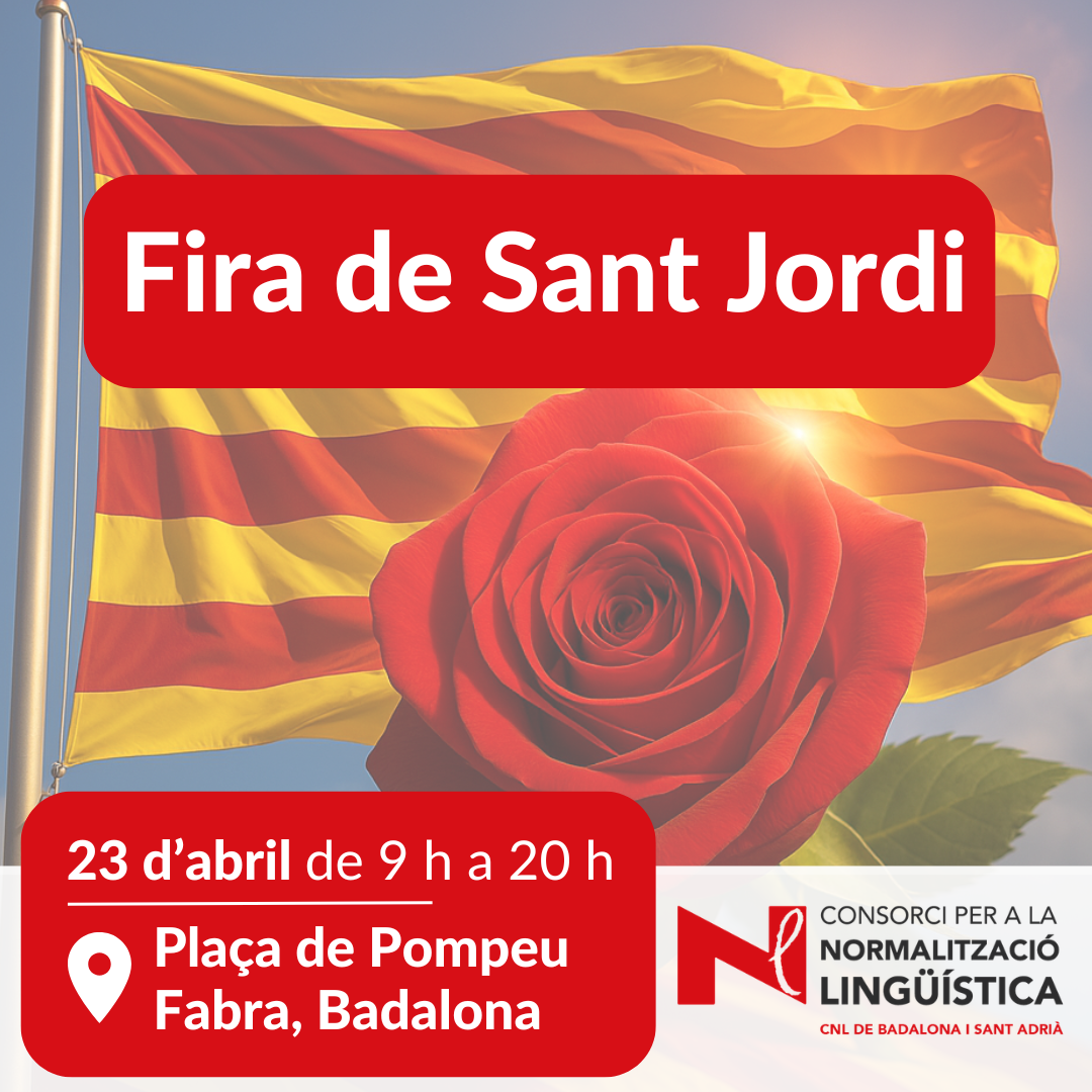 Cerca la paradeta del Centre de Normalització Lingüística a la Fira de Sant Jordi i informa't de tots els serveis que pots aprofitar. Tant si no parles català com si ja en saps i vols millorar-lo, el CNL et posarà a disposició el recurs més adient.