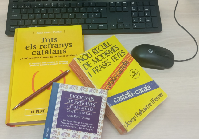 Continuem amb frases fetes i refranys. Aquestes expressions populars ens permeten veure què pensem, quina és la nostra cultura, la nostra opinió, els nostres valors en definitiva, encara que sovint siguin contradictoris. Si ens referim a la feina o als oficis podem dir el treballar fa burro; qui té ofici té benefici, o advocats i procuradors, a l'infern de dos en dos. Si volem veure com expressem les nostres maneres de ser, tenim ser un llepafils; ser un tastaolletes; qui avisa no és traïdor; ser alt com un sant Pau, o al pot petit hi ha la bona confitura. Del bestiar i el camp ens arriben No es pot dir blat que no sigui al sac i ben lligat o qui no vulgui pols, que no vagi a l'era. També ens parlen de les característiques generacionals: gent jove, pa tou; gallina vella fa bon caldo, i el diable sap més per vell que per diable. Pel que fa a la divisió entre classes i funcions socials diem tallar el bacallà; remenar les cireres; amo enredaire, mosso rondinaire, o fent i desfent aprèn l'aprenent. Referents al temps: cel rogent, pluja o vent, o a l'estiu tota cuca viu. I per descomptat, amb termes relacionats amb l'Església que reflecteixen religiositat i moralitat: fer Pasqua abans de Rams; plorar com una Magdalena; pagant sant Pere canta, i per Nadal, qui res no estrena, res no val. Curiosament, a vegades, el tema o l'origen de les locucions ens porta confusions. En posarem dos exemples: agafar el bou per les banyes semblaria que és una expressió referent al bestiar i el camp, però de fet prové del món taurí (agafant el brau per les banyes se l'obligava a doblegar el cap i així se'l podia anul·lar) i tocar el dos, que no té cap relació amb el número, ja que provindria de tocar el dors d'un cavall o ase perquè comencés a marxar. I acabem. Només hem pretès fer una mirada molt breu per aquest món tan extens i ric de les frases fetes i els refranys. N'hem triat unes a l'atzar, però en podíem haver escollit d'altres. Per si en voleu saber més coses, conèixer més expressions o saber què signifiquen (com per exemple les que hem inclòs aquí), us deixem alguns enllaços que segur que us aniran molt bé: Enllaços: Per què diem...? L'origen de 100 dites populars (albertieditor.cat), |