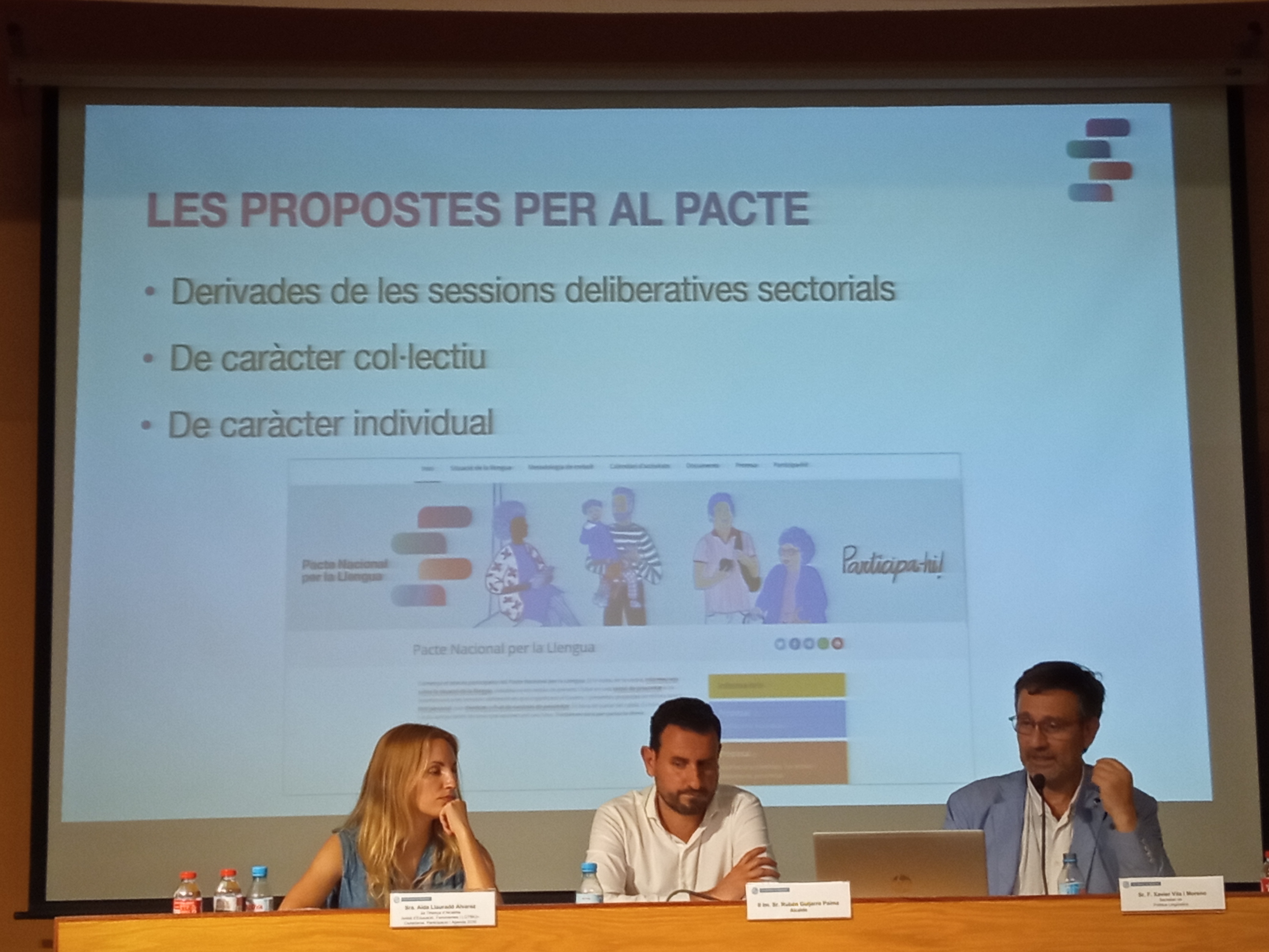 El secretari de Política Lingüística, Francesc Xavier Vila, presenta el Pacte Nacional i anima la ciutadania a debatre sobre el present i el futur del català. L'alcalde de Badalona, Rubén Guijarro, i la segona tinenta d'Alcaldia, Aïda Llauradó, participen en la presentació