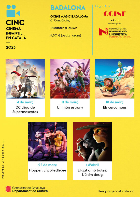 El CINC torna a Badalona i porta aventures, humor i diversió per a tota la família. Durant els mesos de març i abril, grans i petits tindran l'ocasió de veure en català èxits com DC Lliga de Supermascotes i El gat amb botes: L'últim desig.