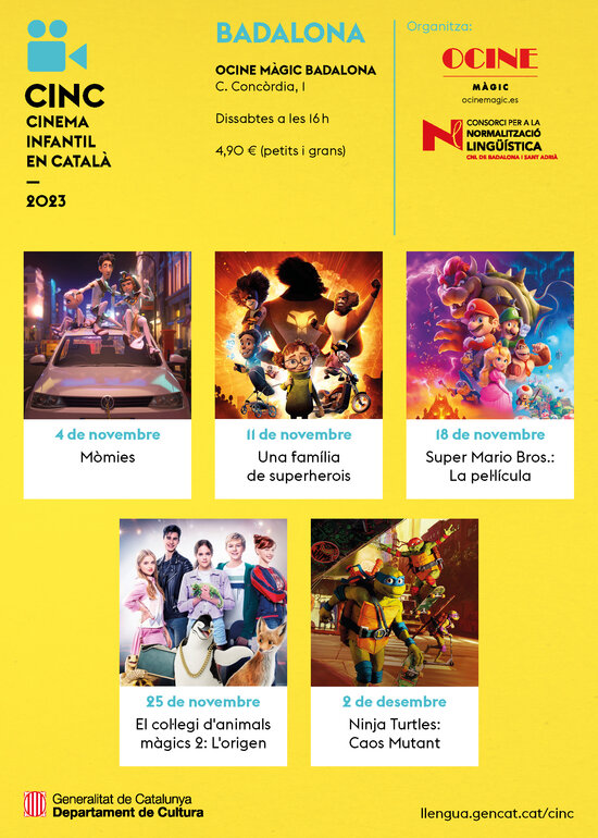 Els dissabtes de novembre i el primer de desembre s'inicia un nou cicle de cinema infantil en català a 4,90€ amb èxits cinematogràfics com: "Ninja Turtles" o "Super Mario Bros.".