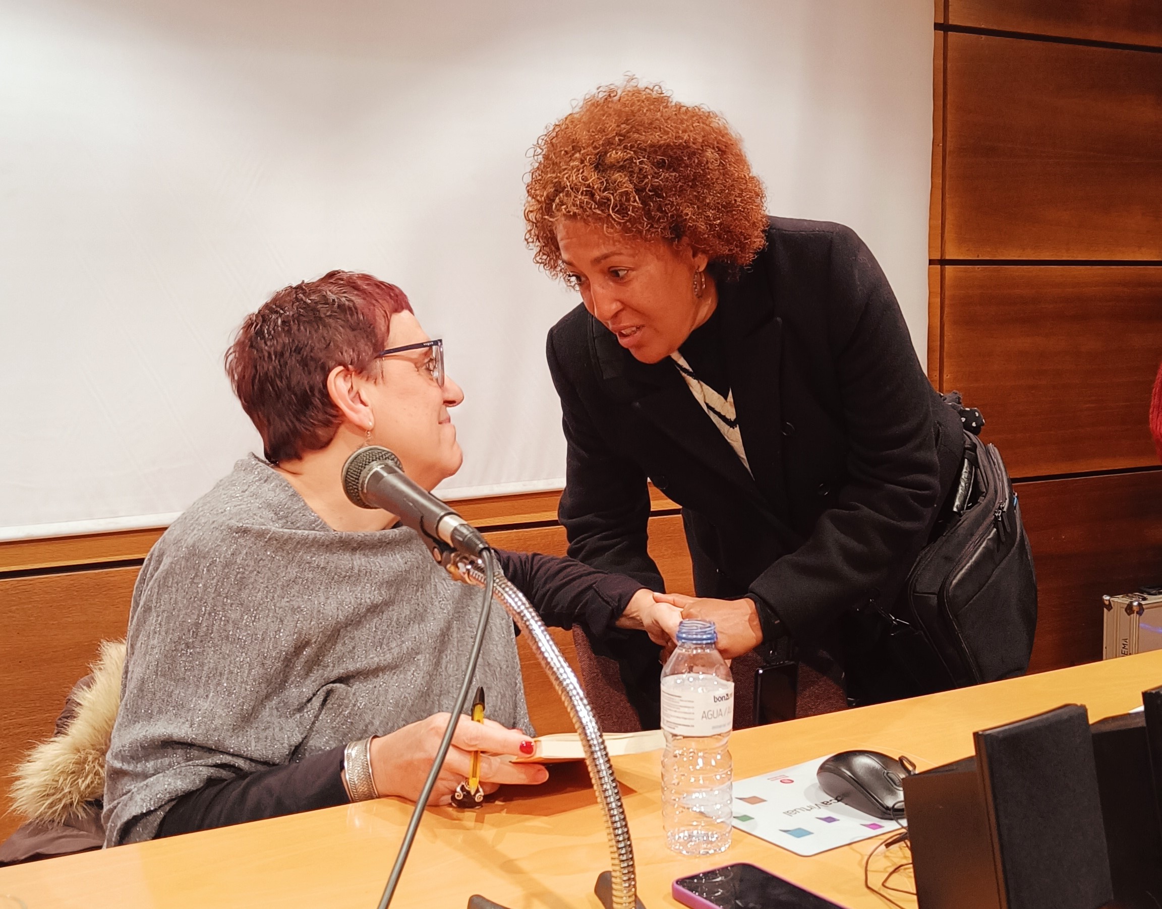 Dos grups d'alumnes participen en una trobada amb l'escriptora Anna M. Villalonga a la Biblioteca Sant Adrià